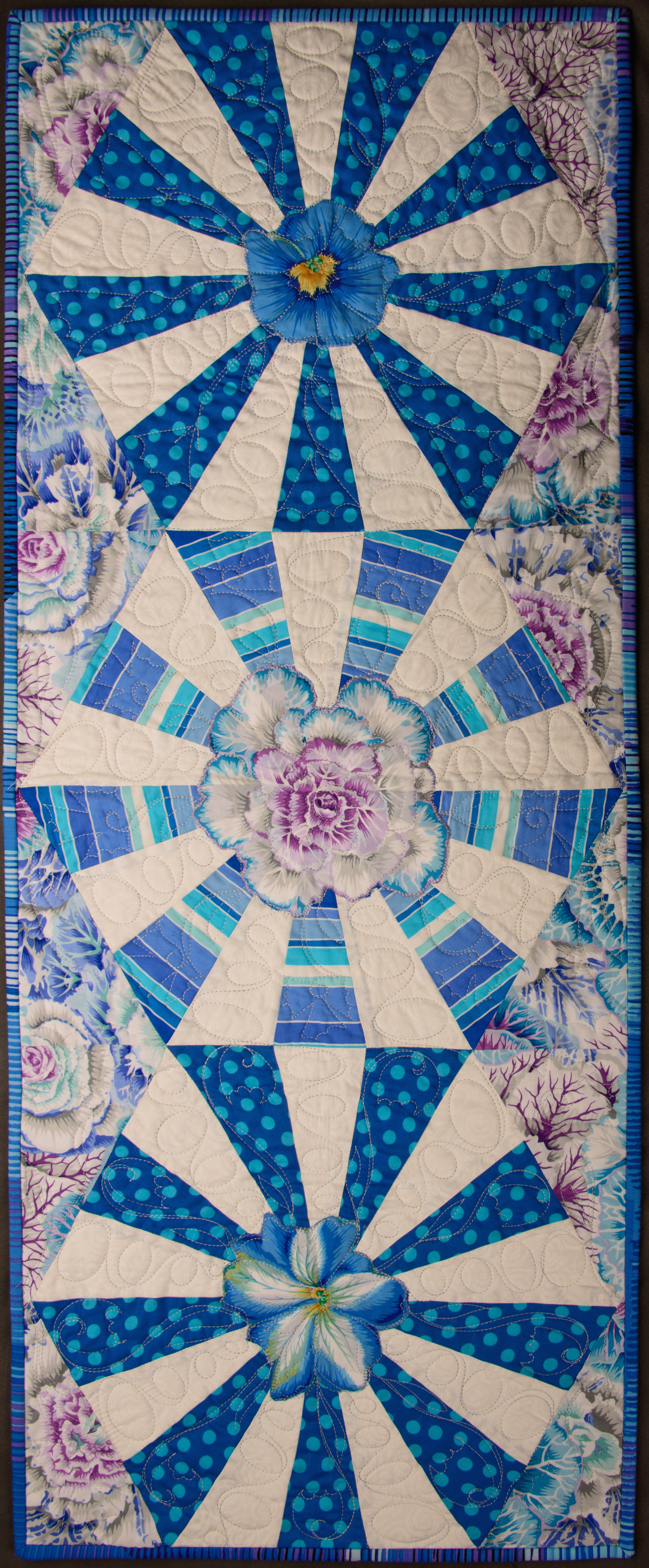 Simplicity is the key. This easy to make runner makes for a quick project. It is a beautiful and elegant centerpiece for any special event. This charming view through the garden gate is the perfect pattern to showcase beautiful large-scale prints. Instructions for three quilt sizes and a table runner are included.