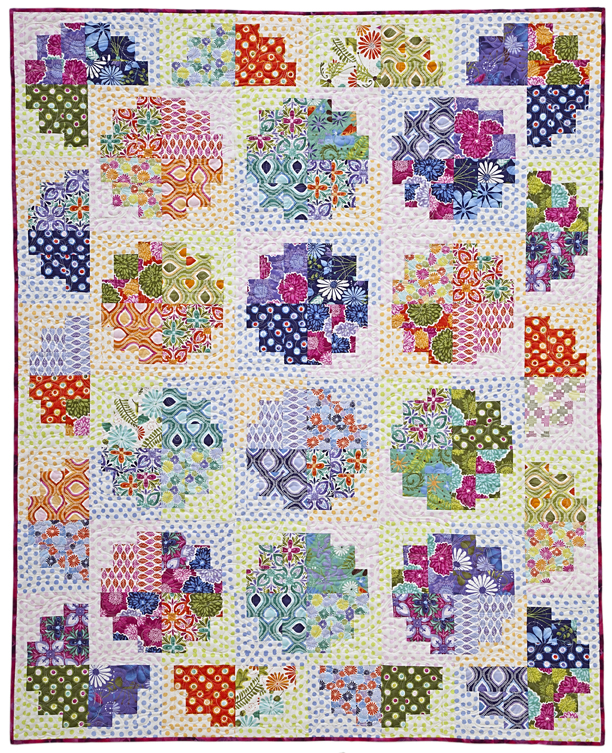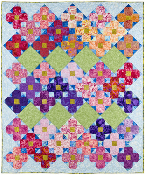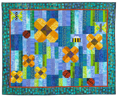 Strips and simple piecing come together like a puzzle to reveal a garden bursting with color and life.