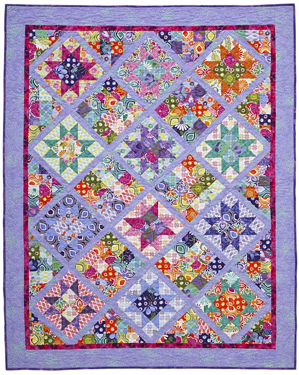 Strip piecing and quick-cutting techniques are used to make this diamond design. No Y-seams are required. Instructions for four quilt sizes are included.