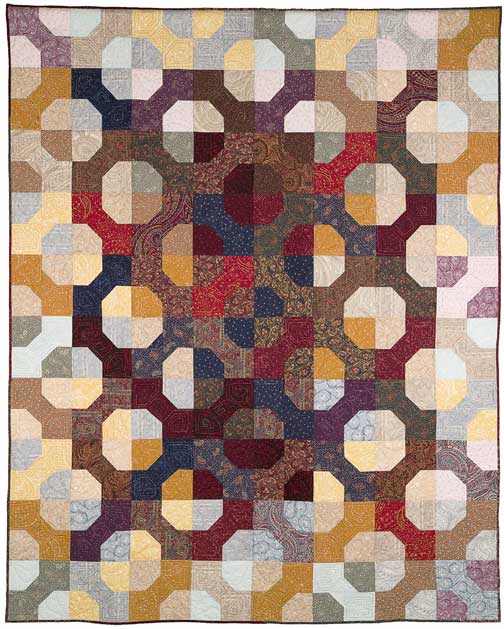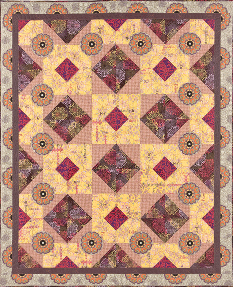 Strip piecing and quick-cutting techniques are used to make this diamond design. No y-seams are required. Instructions for three quilt sizes are included. |