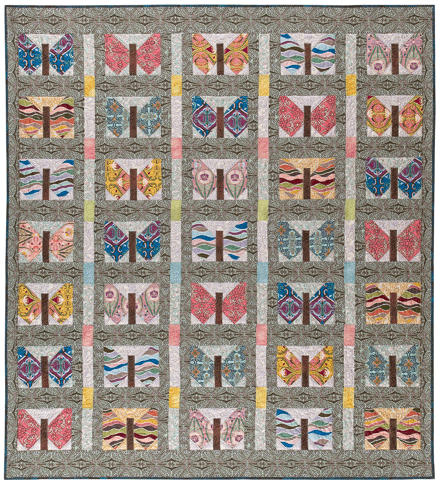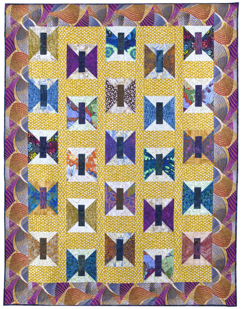 Piece with ease these fast 8" butterfly blocks for your very own graphic butterfly effect. Finished size is 58" x 70" |