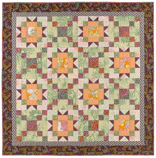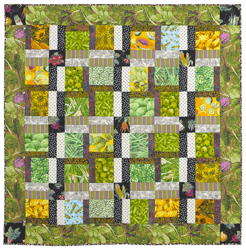 Any collection of fabrics from fruit and vegetables to flowers and leaves work beautifully in this traditional pattern. Instructions for four quilt sizes are included. |