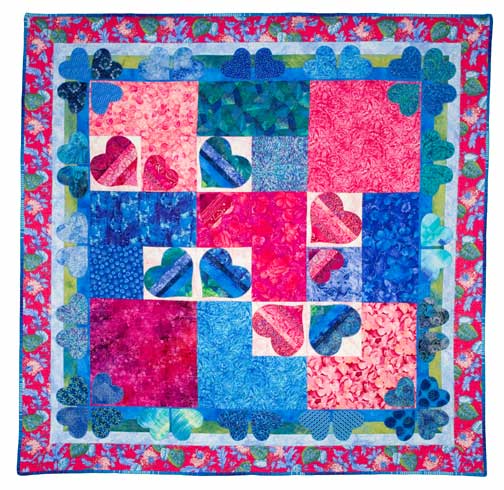Large pieces of fabric provide the perfect background for stitching your own personal love messages. Appliquéd hearts complete the design for that perfect someone in your life. Appropriate for all levels of quiltmakers.