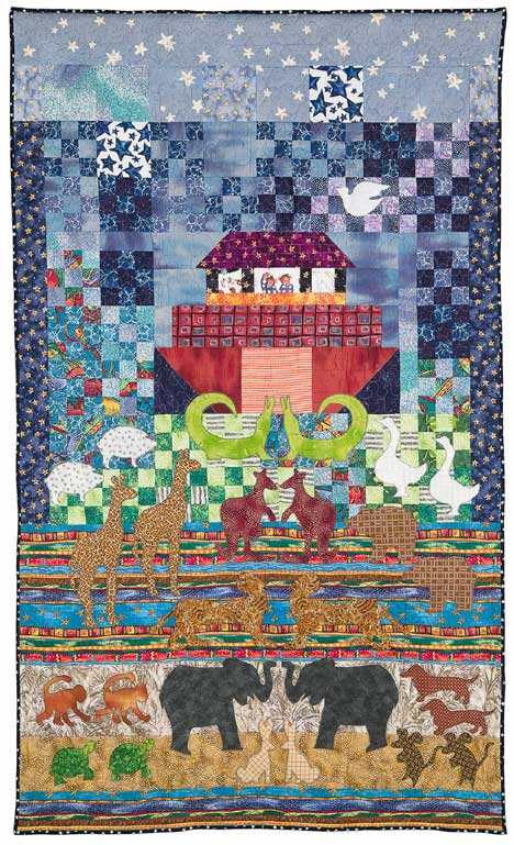 Easy Nine-Patch blocks and wide border strips blend with simple piecing and appliqué animal shapes to create a timeless scene of peace, hope and happiness. Appropriate for any experienced beginner.